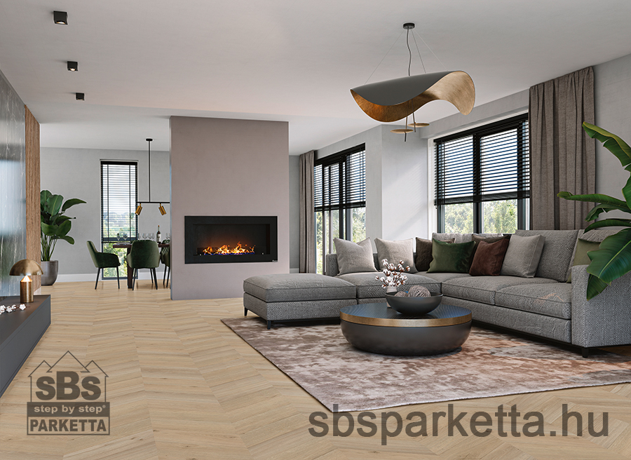 A Chevron 7230 a világos tölgyet jellegzetes szögletes pontmintával ötvözi, így tökéletes egy tágas és modern belső tér megteremtéséhez.