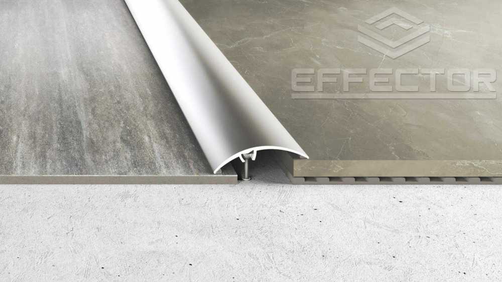 Effector fadekoros burkolatváltó, áthidaló, alumínium szintváltó profil – döntött lencse