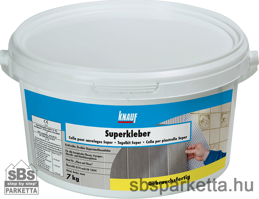 A Superkleber diszperziós beltéri készre kevert burkolatragasztó.